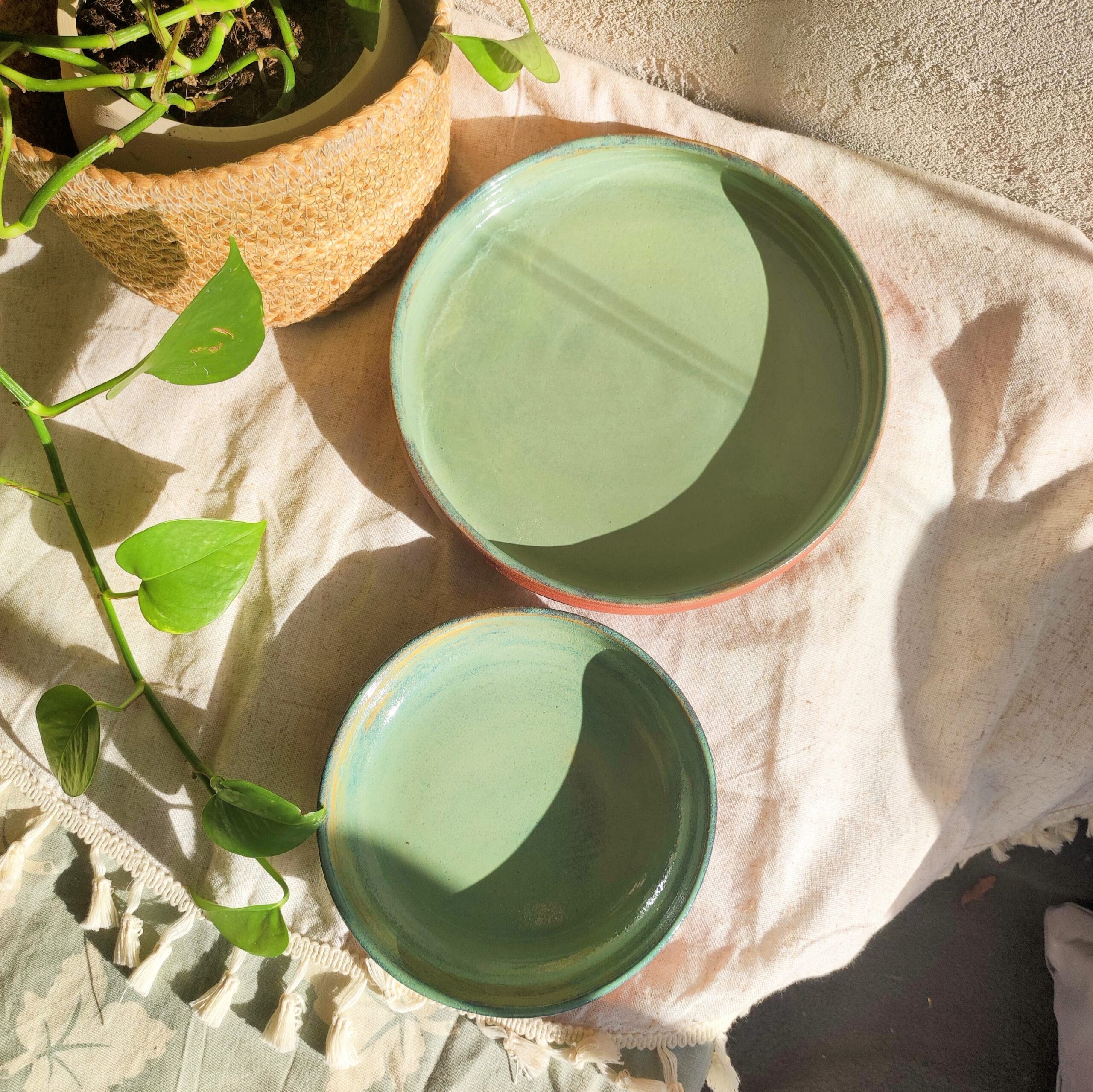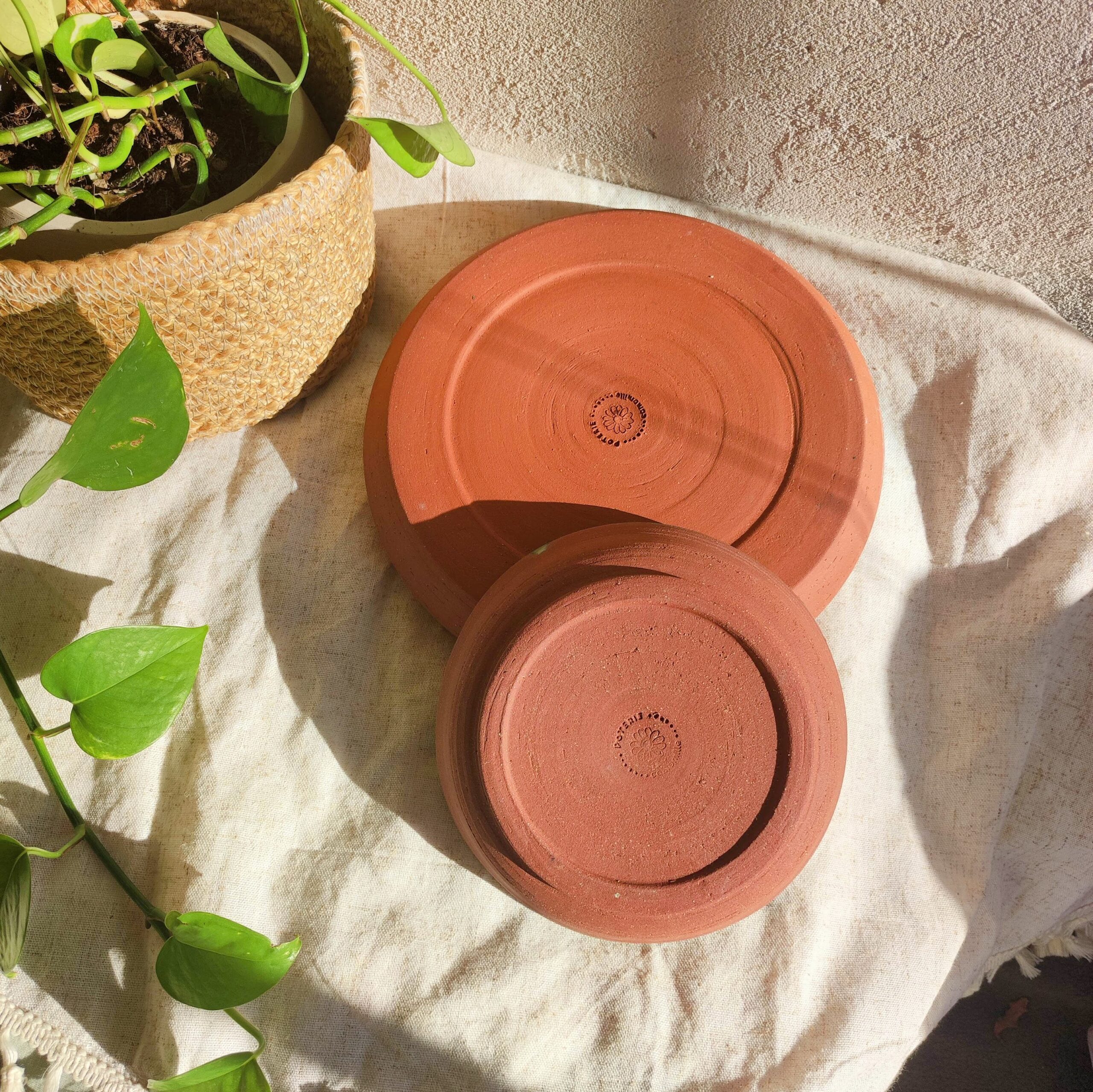Plats en grès roux émaillé. Set de 2. Pour des présentations chaleureuses ✦
