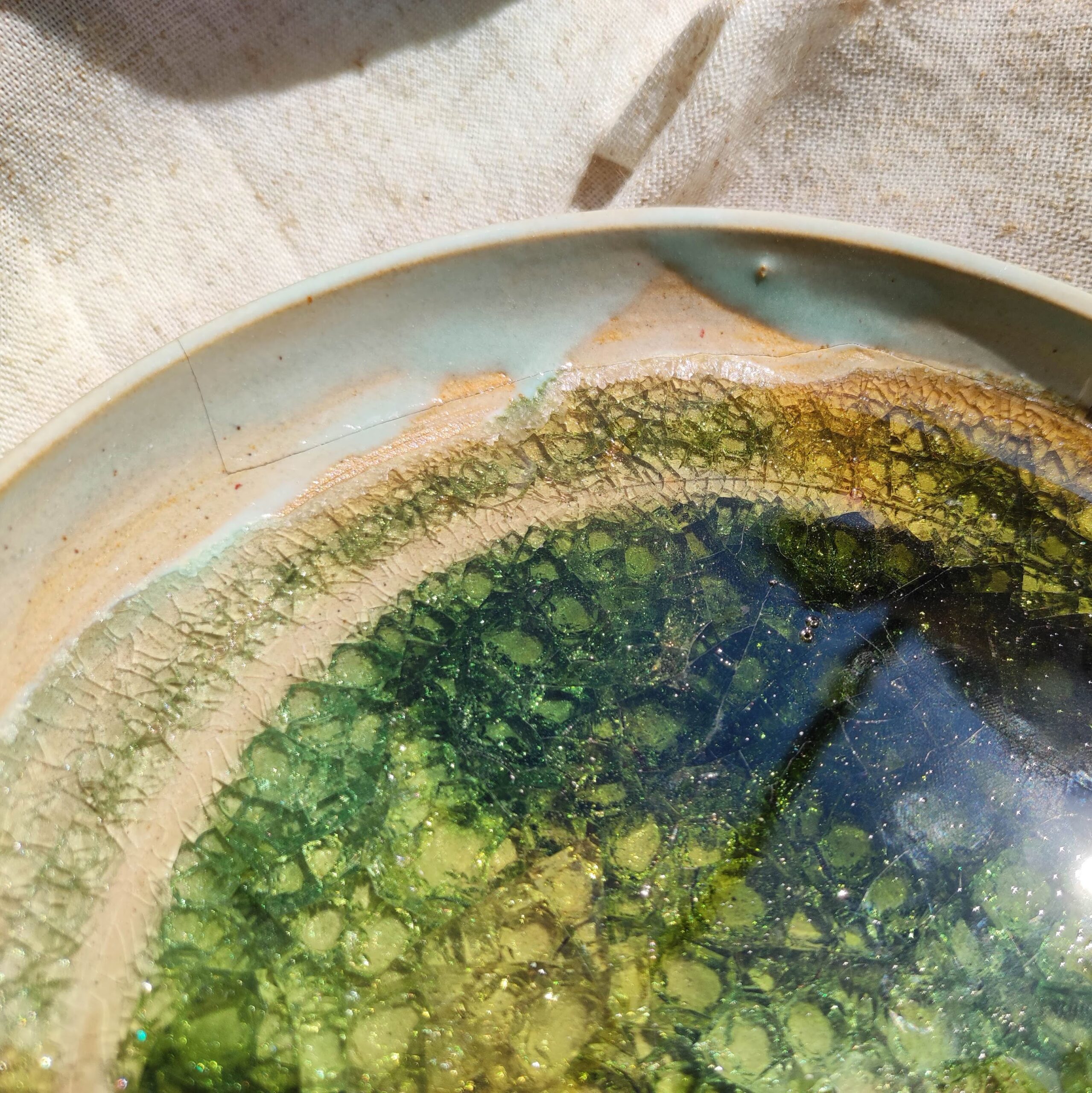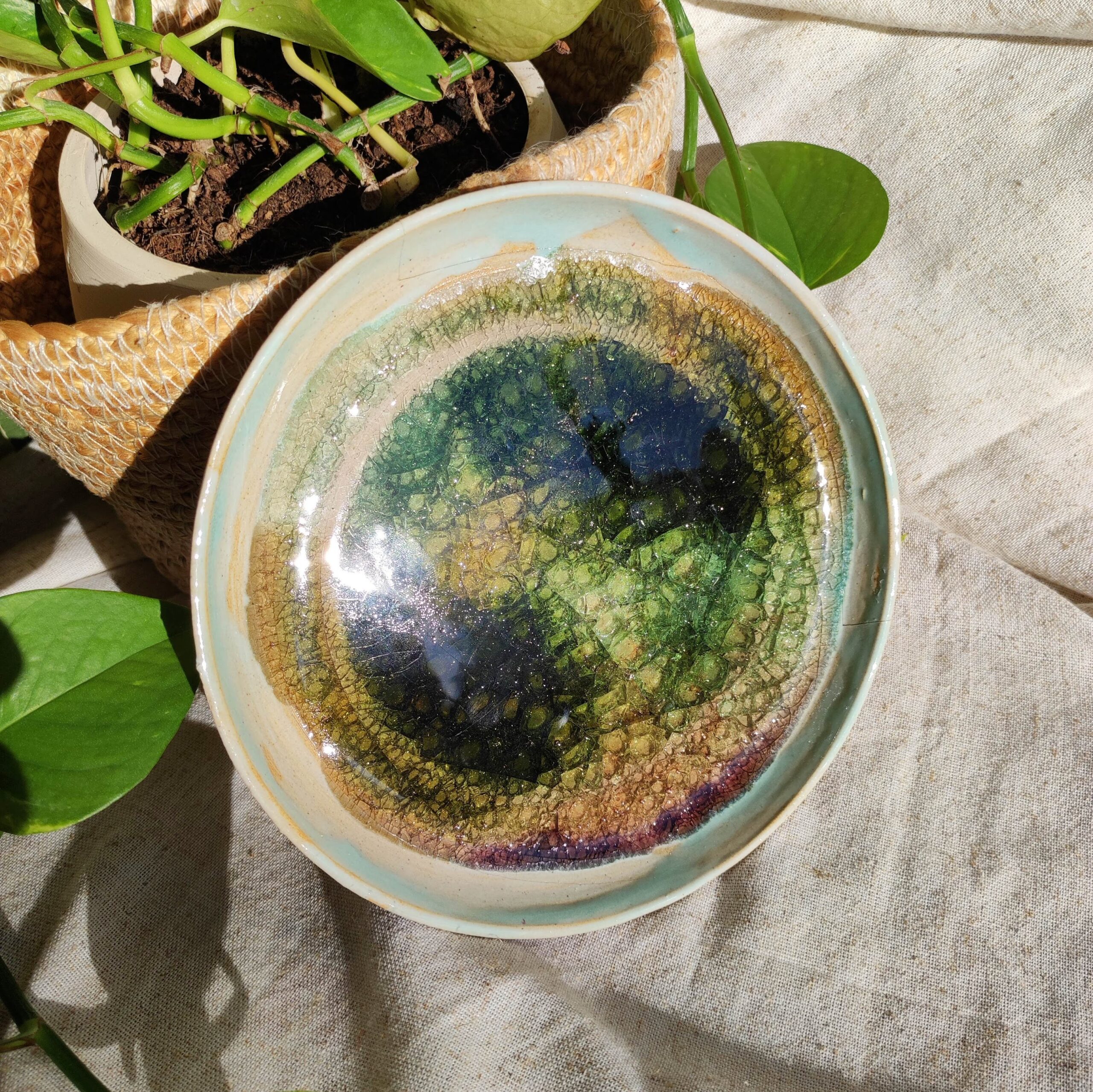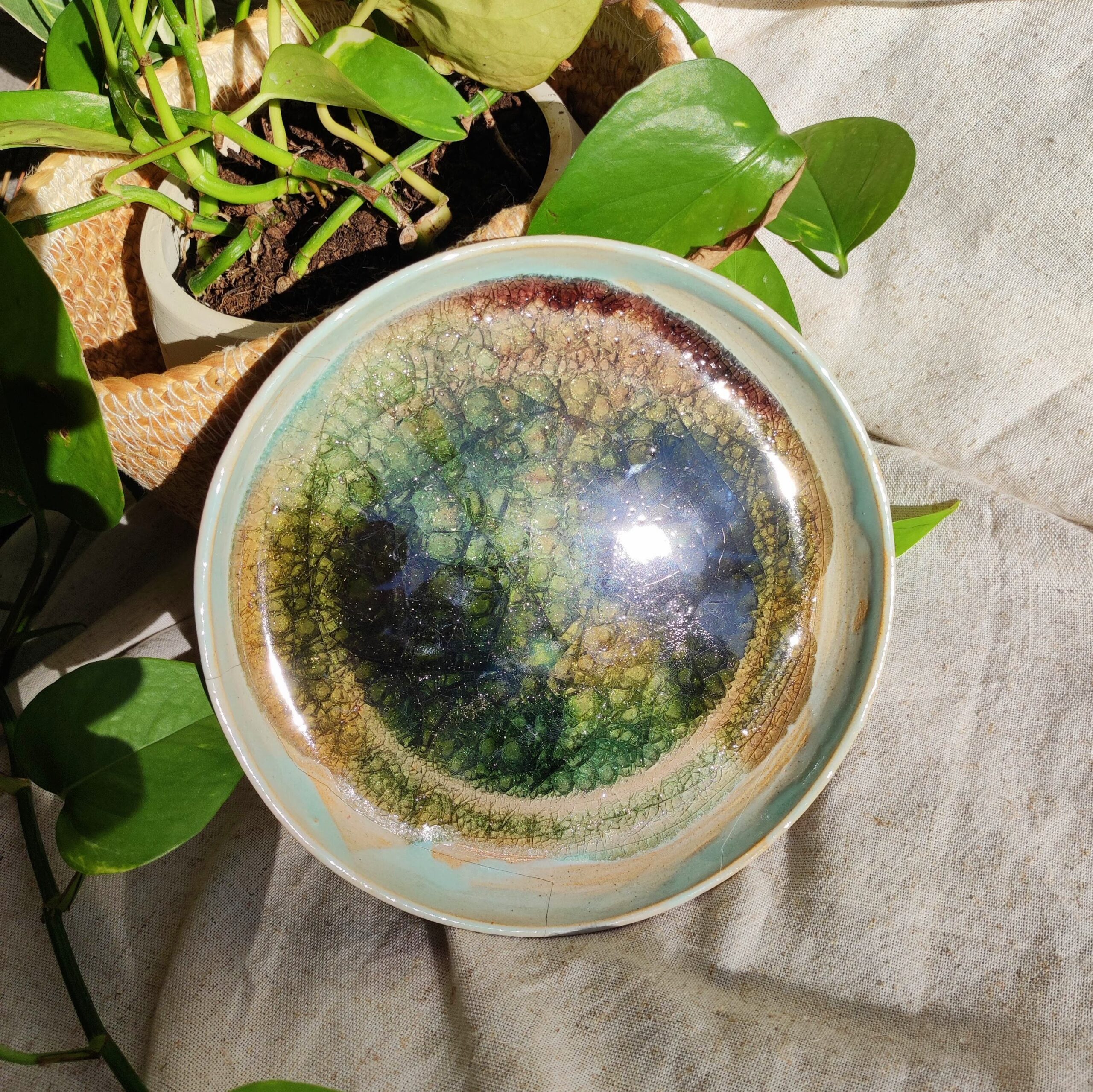 Coupelle – Plat décoratif en céramique avec fragments de verre fondus ✦