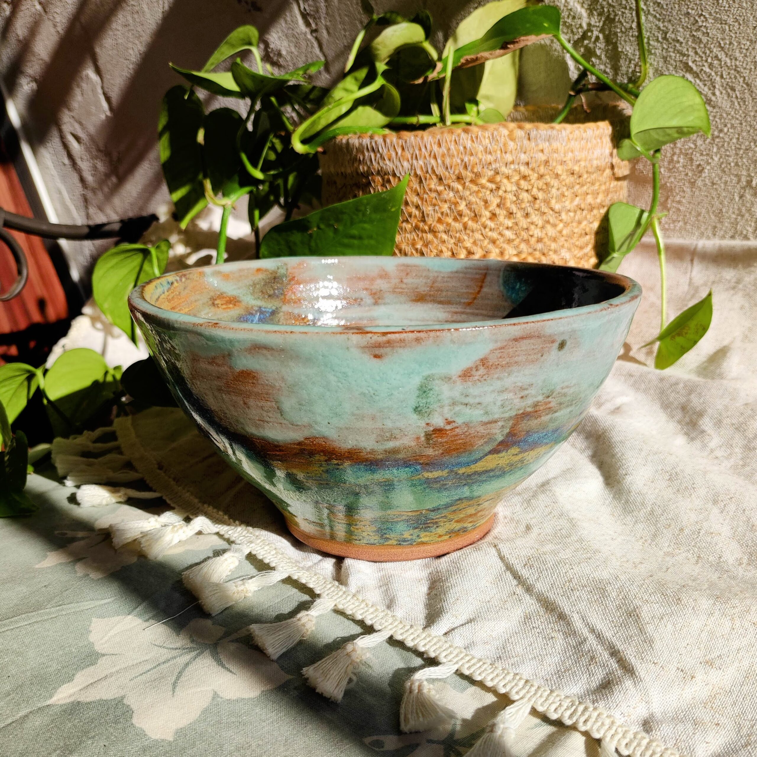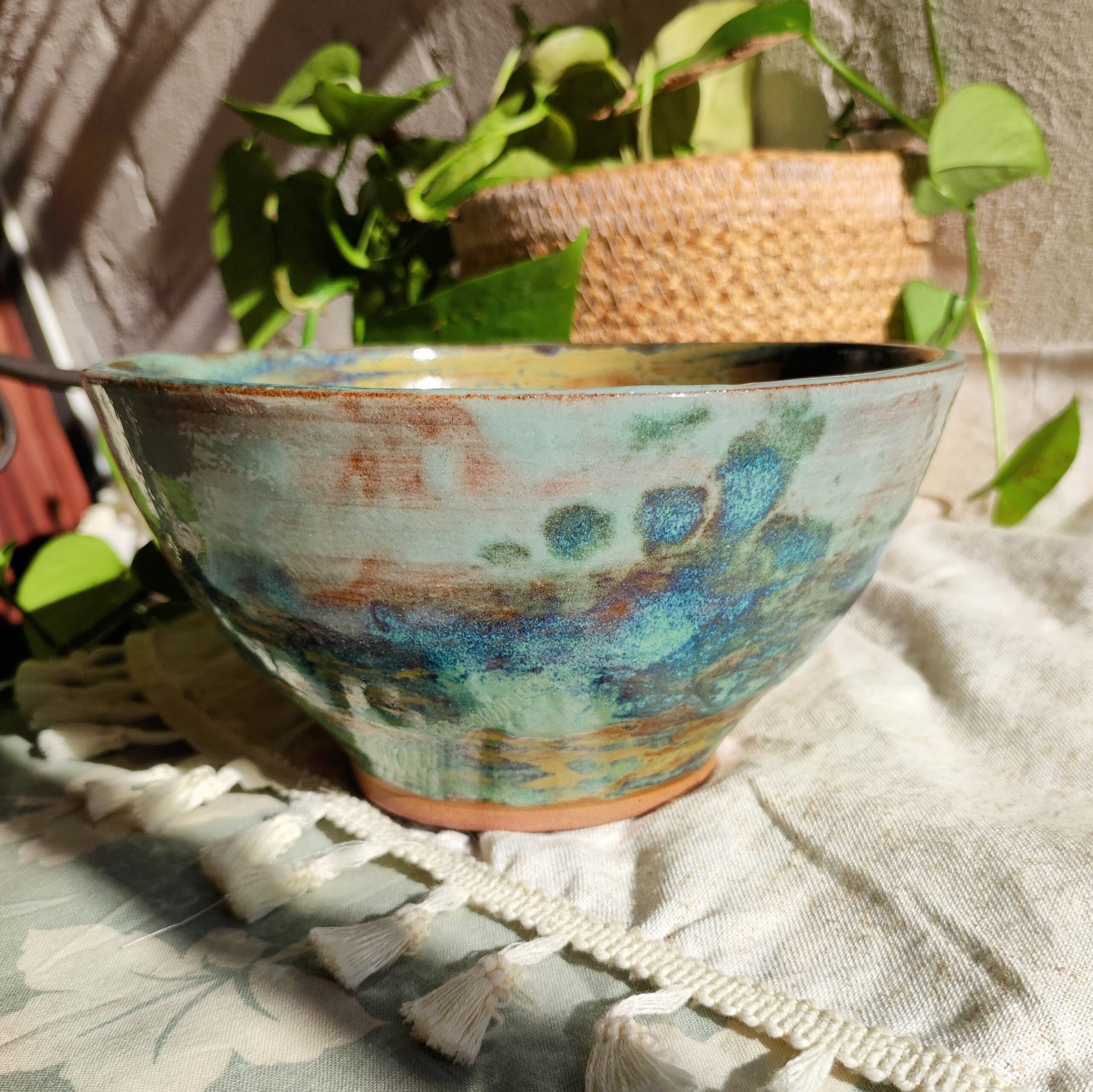 Ce grand saladier artisanal allie élégance et générosité. Sa forme organique et son émail lumineux en font une pièce centrale sur ta table. Idéal pour présenter salades, fruits, ou plats à partager lors de repas conviviaux.