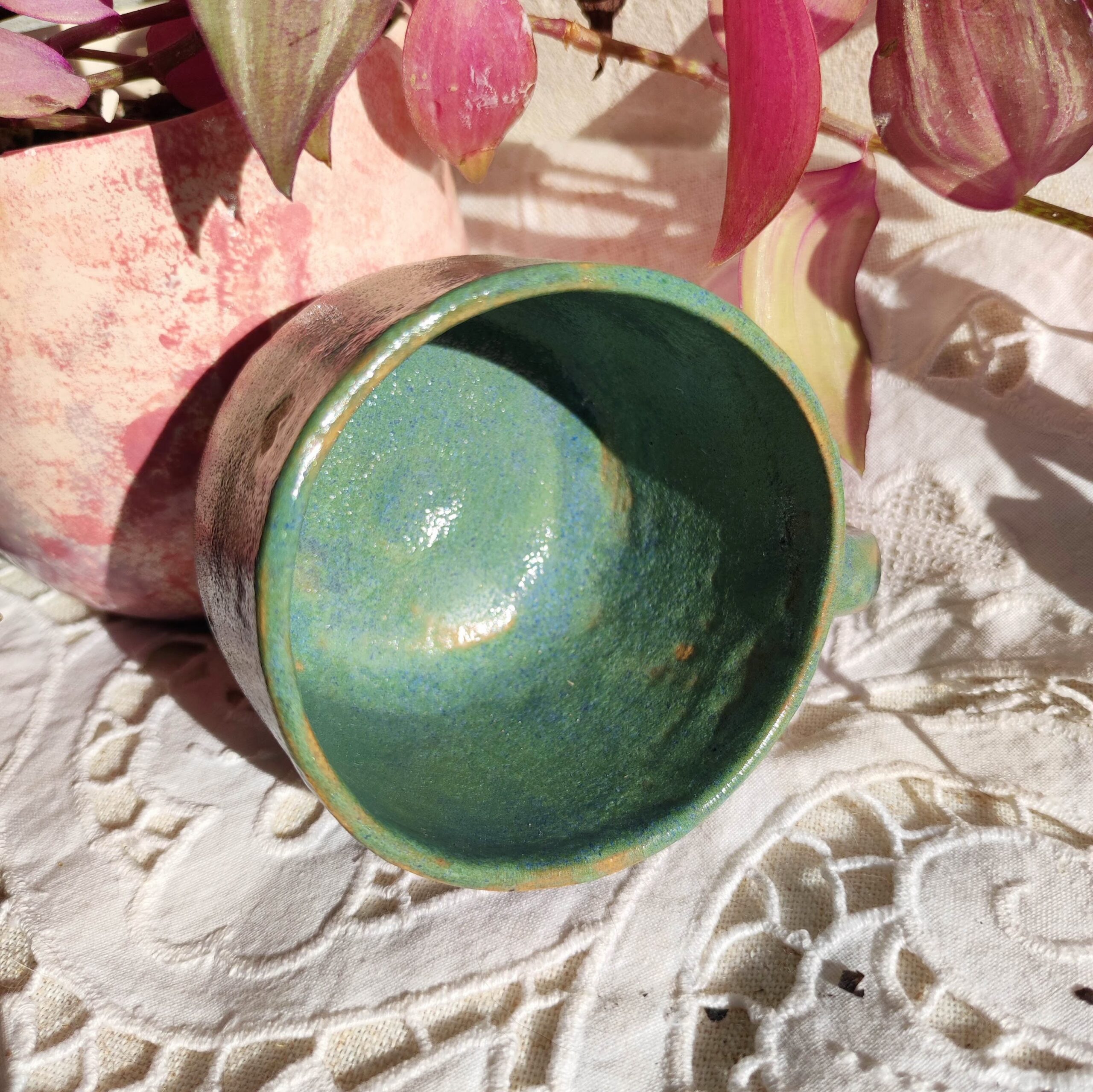 Cette petite tasse à café en grès tourné à la main t’invite à savourer ta boisson chaude avec douceur. Son émail brillant et ses teintes inspirées de la nature créent une expérience sensorielle unique, entre chaleur et sérénité. Idéal pour les cafés et expresso.
